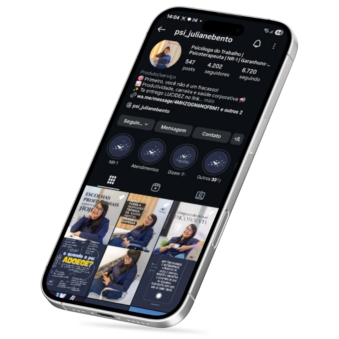Me chamo Juliane Bento da Silva, sou psicóloga do trabalho (CRP 02/23128) e consultora em saúde mental corporativa. Minha atuação é voltada para diagnóstico e gestão de riscos psicossociais, conforme a NR-1, apoiando empresas na prevenção de multas, redução de passivos trabalhistas e fortalecimento do clima organizacional.